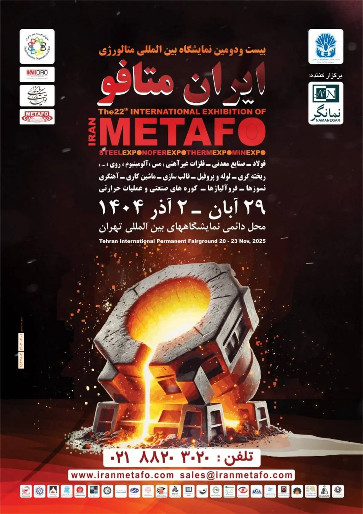 بیستودومین نمایشگاه بینالمللی متالورژی، فولاد و ریختهگری (ایران متافو) از ۲۹ آبان به مدت چهار روز در محل دائمی نمایشگاههای بینالمللی تهران برگزار میشود.