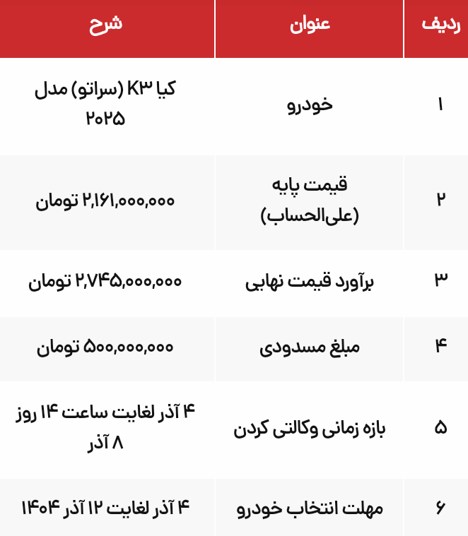 شرکت هرمس خودرو فروش کیا K3 را در سامانه یکپارچه آغاز کرد.