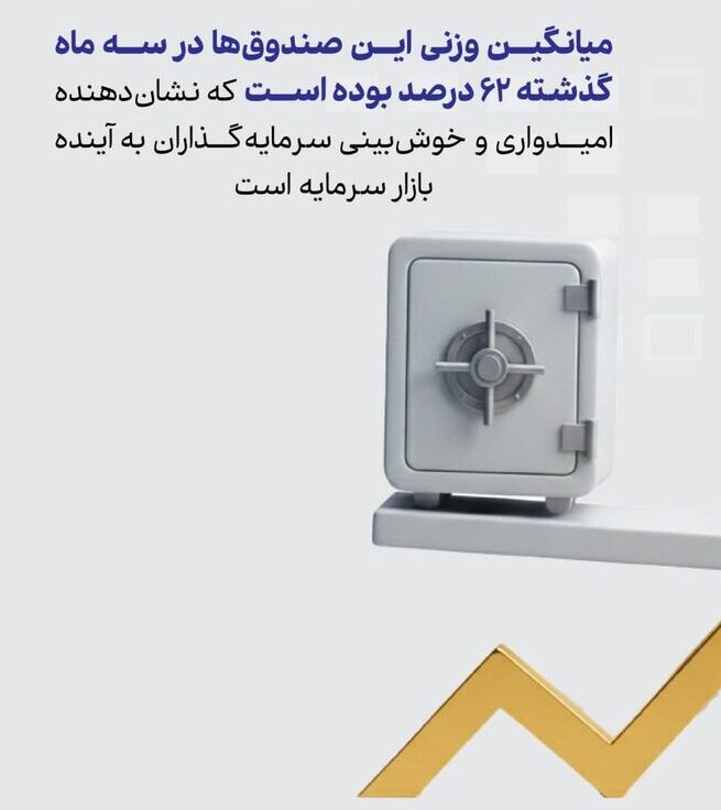 به گزارش صنعت مالی، میانگین وزنی این صندوق‌ها در ۳ ماه گذشته ۶۲ درصد بوده که نشان‌دهنده امیدواری و خوش‌بینی سرمایه‌گذاران به آینده بازار سرمایه است.