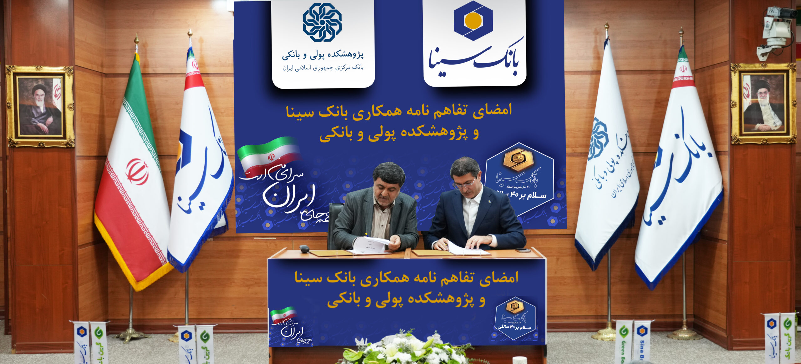 تفاهمنامه همکاری پژوهشی بانک سینا و پژوهشکده پولی و بانکی، با هدف توسعه فعالیتهای علمی و تحقیقاتی در صنعت بانکداری، به امضا رسید.