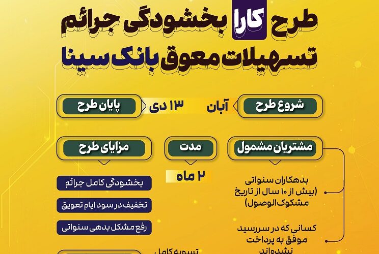بانک سینا با اجرای طرح ۲ ماهه «کارا»، فرصتی ویژه برای بخشودگی جرائم تسهیلات غیرجاری فراهم کرده است.