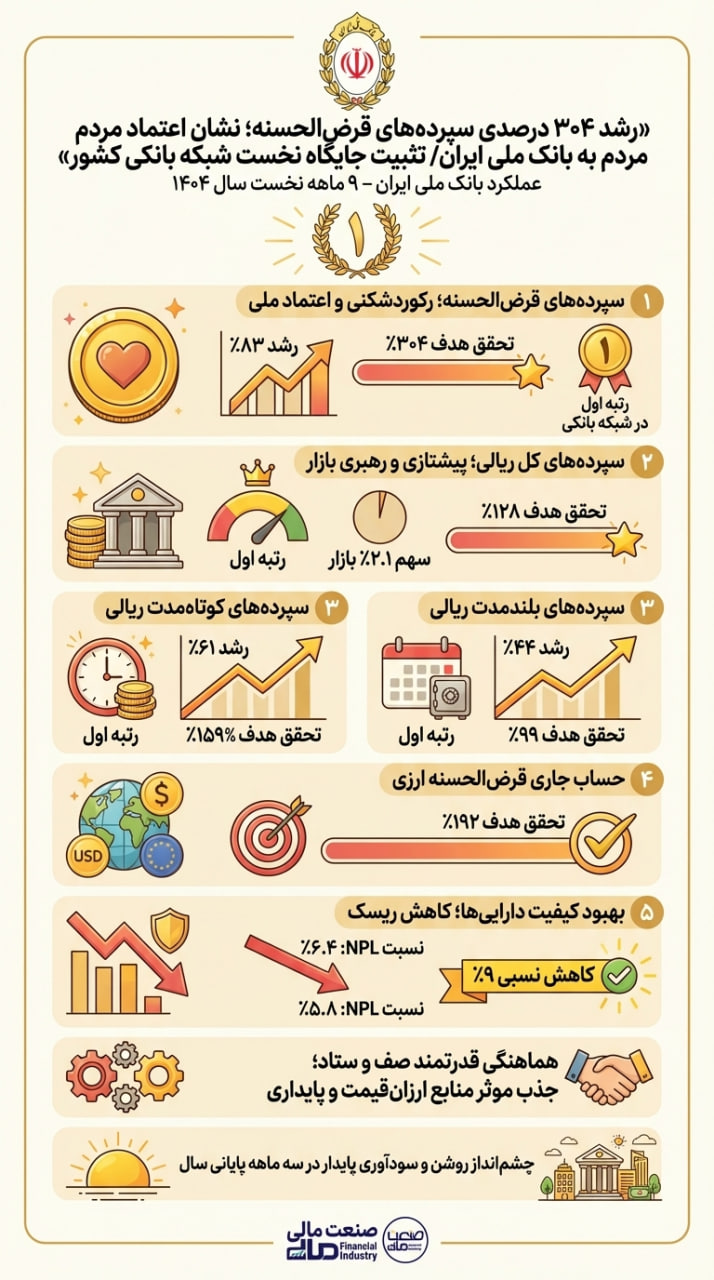 رشد 304 درصدی سپرده های قرض الحسنه بانک ملی؛ نشان اعتماد مردم به بانک ملی