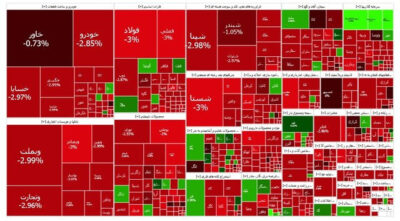فارس، فملی و فولاد بیشترین تاثیر منفی را بر شاخص بورس داشتند.از نمادهای پرتراکنش نیز میتوان به خودرو، خساپا و فولاد اشاره کرد.