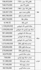 قیمت سکه و طلا امروز چهارشنبه ۲۳ مهر ۱۴۰۴ اعلام شد.
