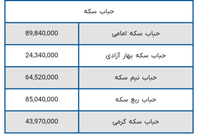 به گزارش صنعت مالی، قیمت سکه و قیمت طلا امروز شنبه ۲ اسفند ۱۴۰۴ را در جدول زیر مشاهده کنید. علاوه بر قیمت سکه امامی، بهار آزادی، گرمی، نیم سکه و ربع سکه میتوانید قیمت مثقال و انس جهانی طلا، طلای آبشده و دست دوم را نیز مشاهده فرمایید.