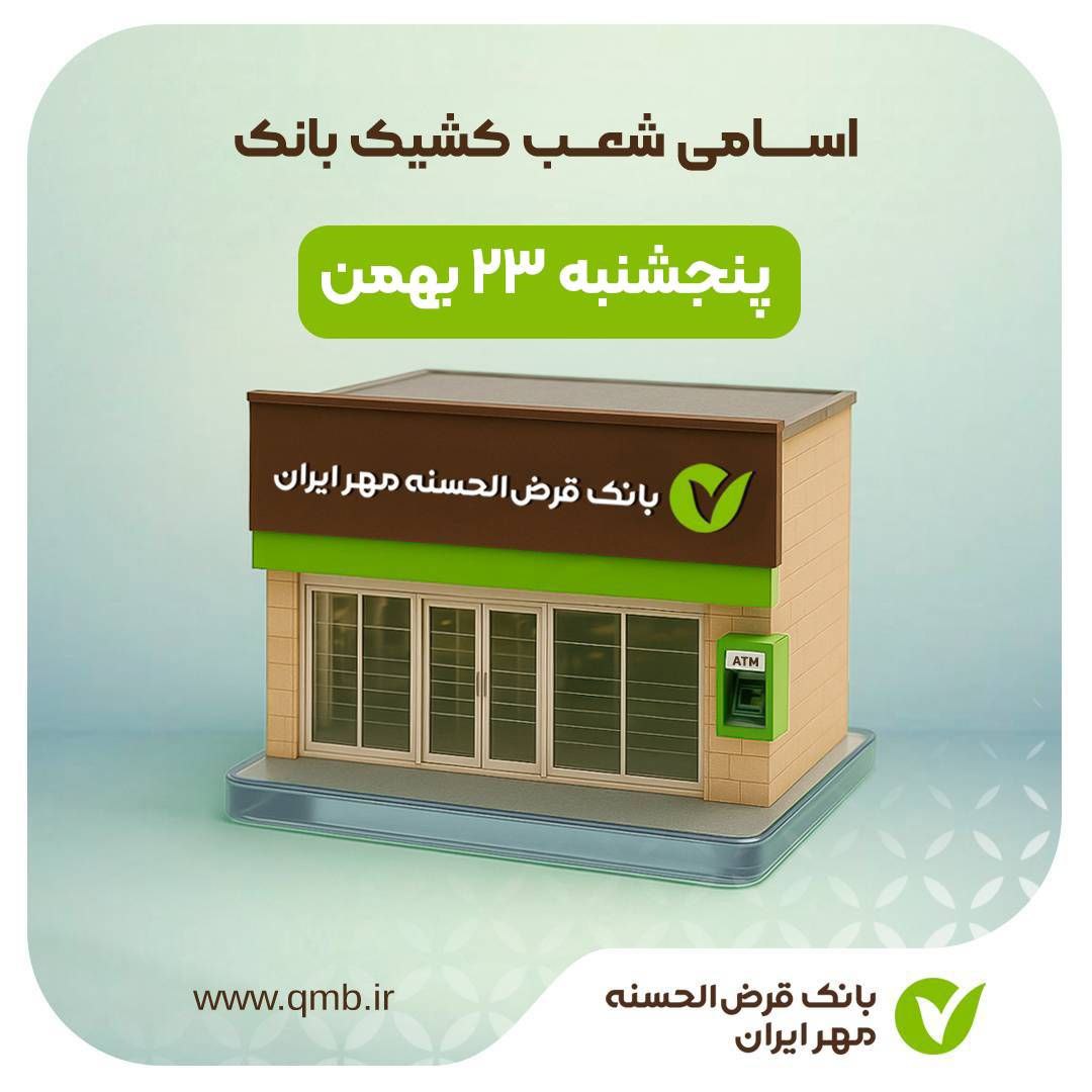 به گزارش صنعت مالی به نقل از روابط عمومی بانک قرض الحسنه مهر ایران، شعب کشیک بانک در روزهای پنجشنبه، از ساعت ۸ تا ۱۲ آماده خدمترسانی به مشتریان گرامی هستند.