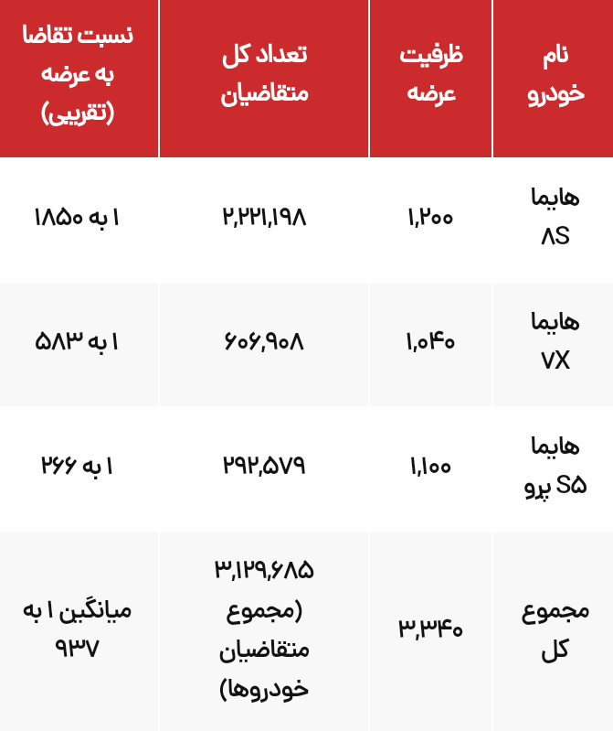 بر اساس آمارهای رسمی، بیش از ۳.۵ میلیون متقاضی برای تصاحب تنها ۳,۳۴۰ دستگاه خودرو به رقابت پرداختند؛ رقمی که نشاندهنده تداوم نگاه سرمایهای به کالای مصرفی خودرو در اتمسفر اقتصادی فعلی است.