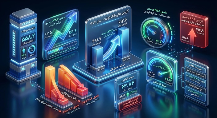 در مجموع، بررسی اعداد و روندهای مالی بانک تجارت تا پایان آبان‌ماه ۱۴۰۴ نشان می‌دهد بانک در مسیر رو به رشد خود باقی مانده، اما همچنان با چالش هزینه‌های اداری و افت درآمدهای غیرعملیاتی روبه‌روست.