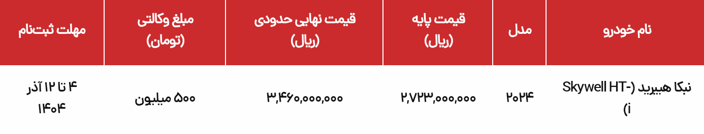 به گزارش صنعت مالی، شرکت نوین ماهان (نبکا) در جدیدترین اطلاعیه خود، جزئیات شرایط فروش کراساوور پلاگین هیبرید اسکایول HT-i را ویژه آذرماه ۱۴۰۴ اعلام کرد.