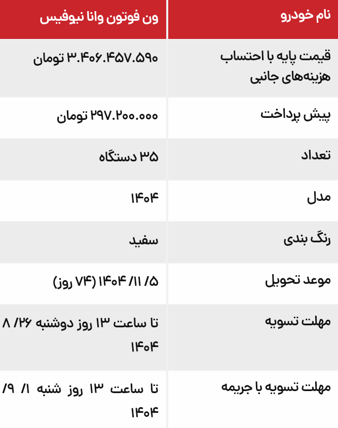ایران‌خودرو دیزل ون فوتون وانا نیوفیس را در بورس کالا به عرضه درمی‌آورد.