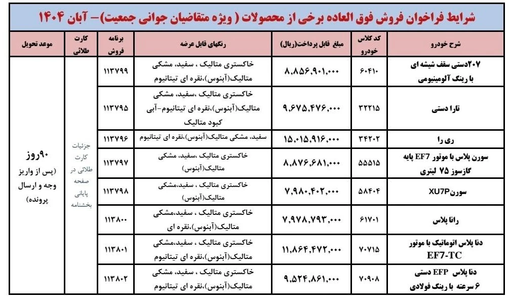 در اطلاعیه ایران خودرو آمده‌است:  این فراخوان ویژه مادرانی است که فرزند دوم یا بعد از آن را پس از 1400/08/24 به دنیا آورده‌اند و موفق شده‌اند در دوره نهم ثبت‌نام آبان 1404 در سامانه ثبت درخواست خرید خودرو نام‌نویسی کنند.