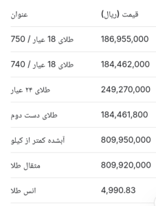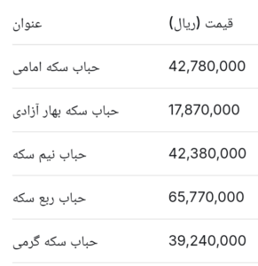 به گزارش صنعت مالی، قیمت سکه و قیمت طلا امروز سه شنبه ۲۸ بهمن ۱۴۰۴ را در جدول زیر مشاهده کنید. علاوه بر قیمت سکه امامی، بهار آزادی، گرمی، نیم سکه و ربع سکه می‌توانید قیمت مثقال و انس جهانی طلا، طلای آبشده و دست دوم را نیز مشاهده فرمایید.