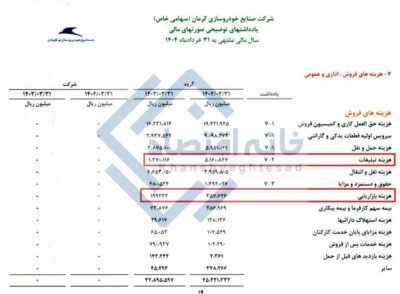 به گزارش صنعت مالی، براساس صورت مالی شرکت صنایع خودروسازی کرمان، این خودروساز طی سال گذشته برای بخش تبلیغات و بازاریابی نزدیک به ۵۵۲ میلیارد تومان هزینه کرده‌است، رقمی که سال ۱۴۰۲ حدود ۱۵۷ میلیارد تومان بوده و طی سال گذشته ۳/۵ برابر شده‌است.