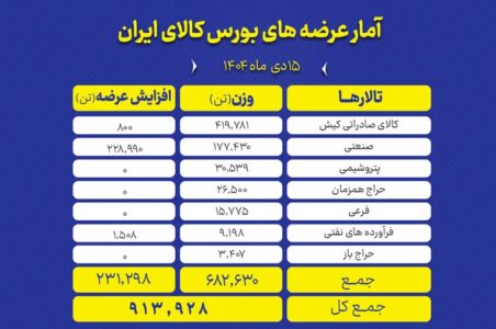 به گزارش صنعت مالی، آمار معاملات بازار فیزیکی بورس کالای ایران نشان می دهد در هفته منتهی به 12 دی ماه حدود 2 میلیون و 266 هزار تن انواع کالا و...
