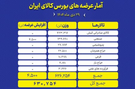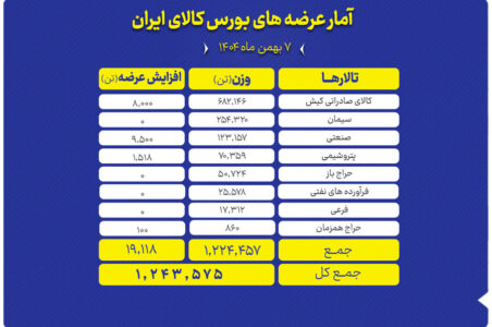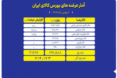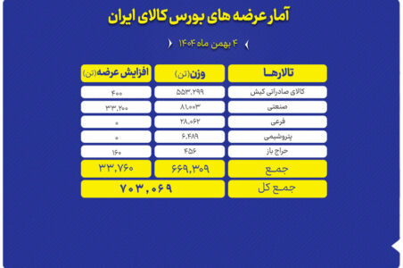 عرضه محصولات مختلف در بورس کالای امروز شنبه 1404/11/04